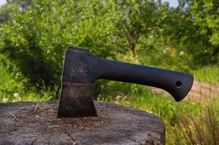 It was at this point that #G5 stepped in. He insisted that the woods were full of such treasures and offered to help me find one. A couple of days later, he headed out the door in search of a stick for me, and I had to hurry to keep up. We grabbed his dads axe and set off on an adventure of our own.